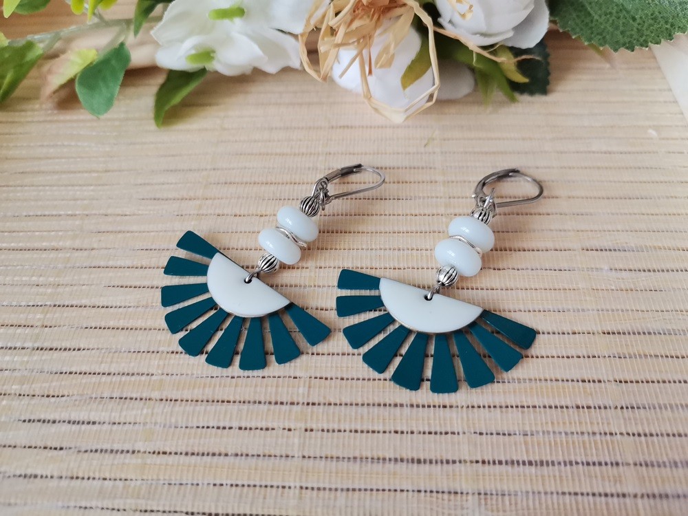 2 pendentifs métal éventail fer blanc