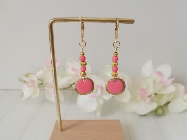 Kit boucles d'oreilles acier inoxydable doré et sequin émail rose