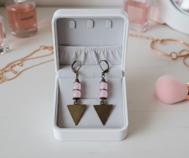 Kit boucles d'oreilles pendentif métal et perles colonnes rose