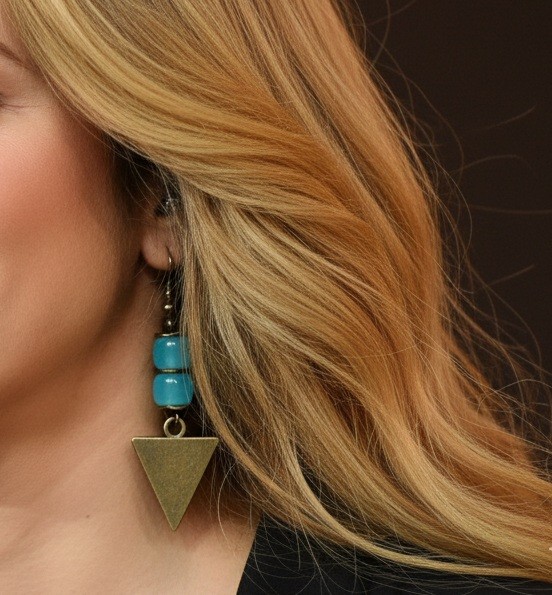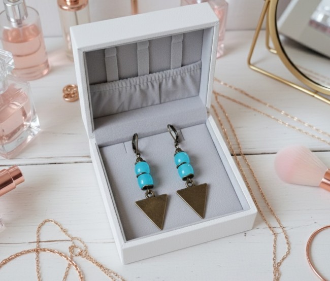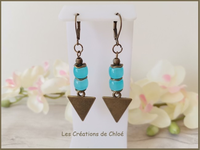 Kit boucles d'oreilles pendentif métal et perles colonnes bleues