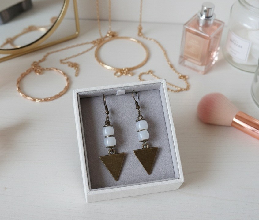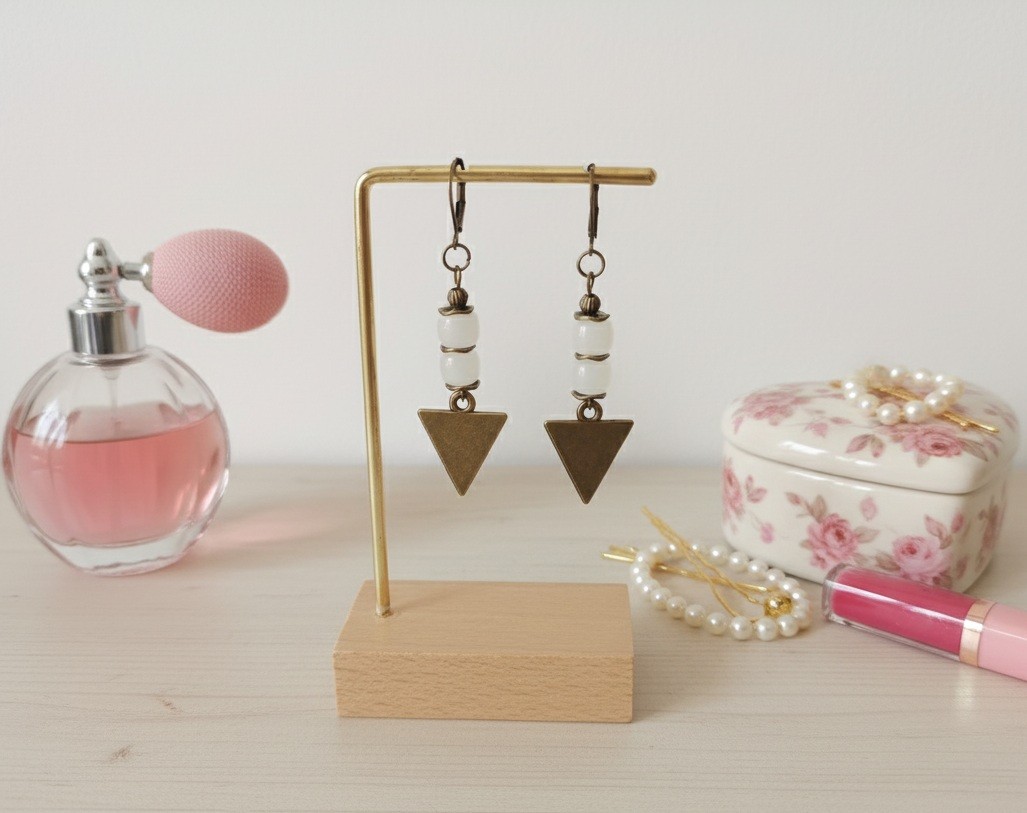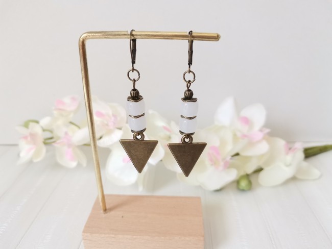 Kit boucles d'oreilles pendentif métal et perles colonnes blanches