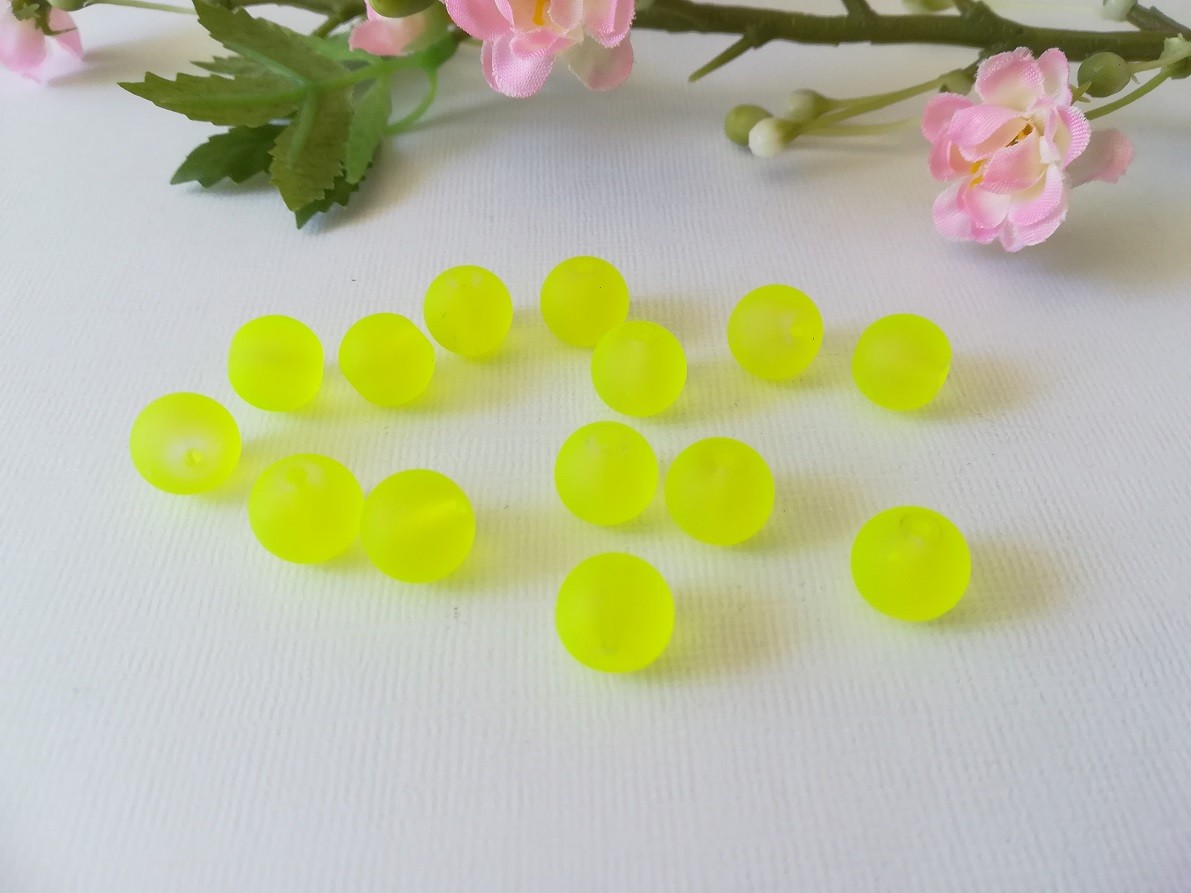 30 Perles en verre givré 10 mm jaune fluo