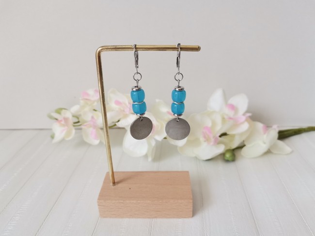Les dormeuses, perles rondelles intercalaires, anneaux et clous sont en acier inoxydable et donc anti allergie.