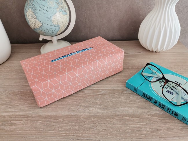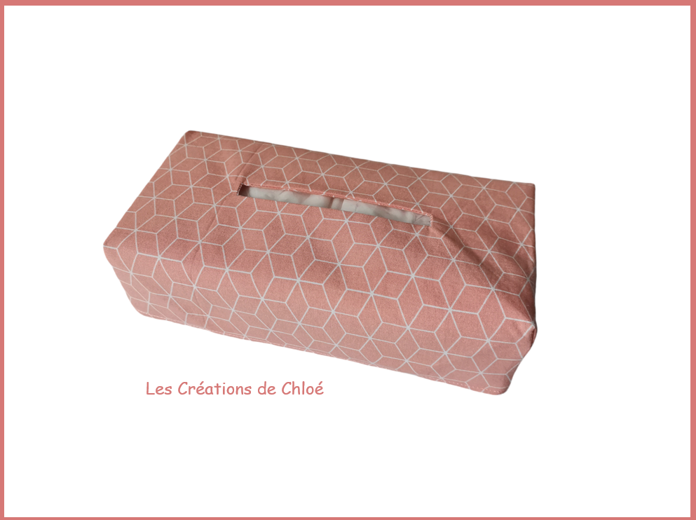 Housse pour boite à mouchoirs saumon motifs géométriques