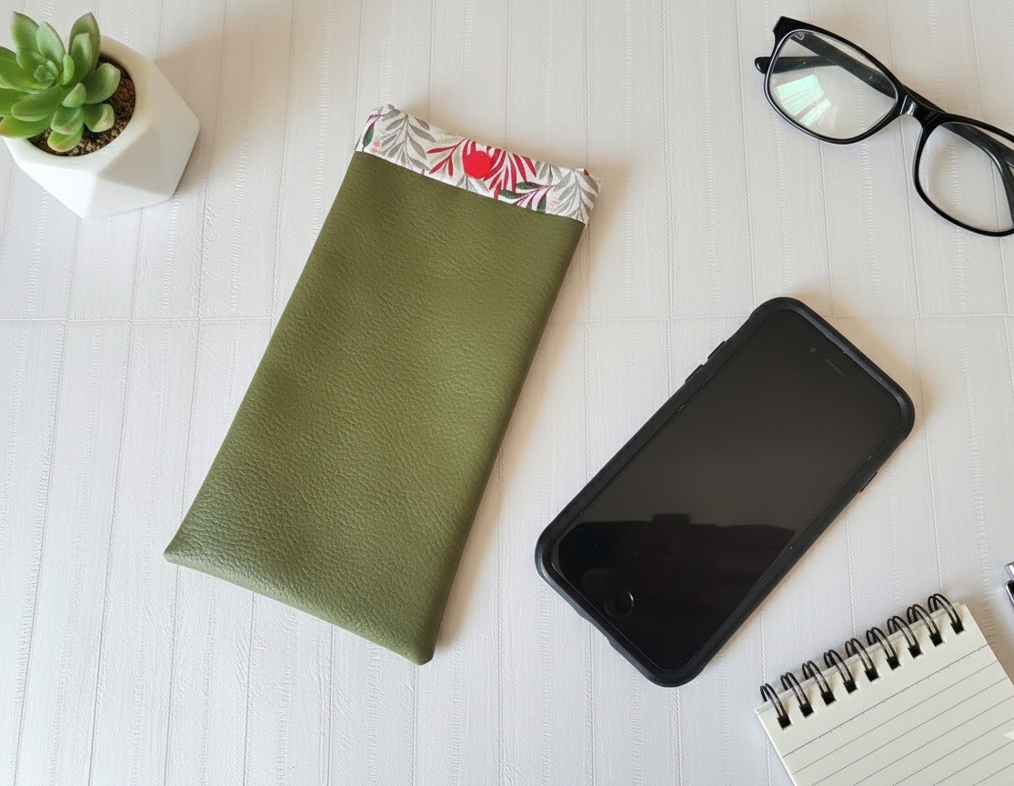 Etui simili cuir kaki et coton pour téléphone portable