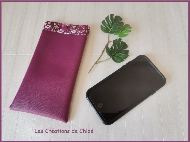 Cet étui pour téléphone portable est confectionné avec un tissu simili cuir, il est entièrement doublé avec un tissu coton certifié Oeko-Tex pour plus d'épaisseur afin de protéger votre portable, il se ferme avec un bouton pression.