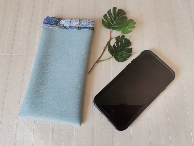 Cet étui pour téléphone portable est confectionné avec un tissu simili cuir, il est entièrement doublé avec un tissu coton certifié Oeko-Tex pour plus d'épaisseur afin de protéger votre portable, il se ferme avec un bouton pression.