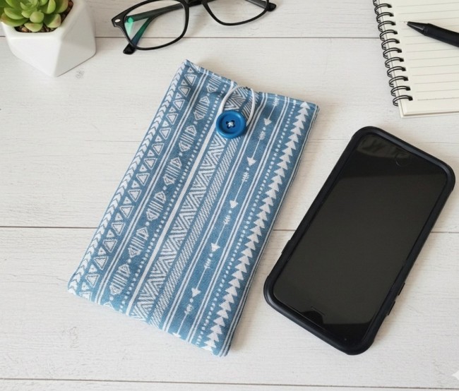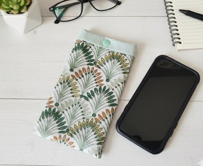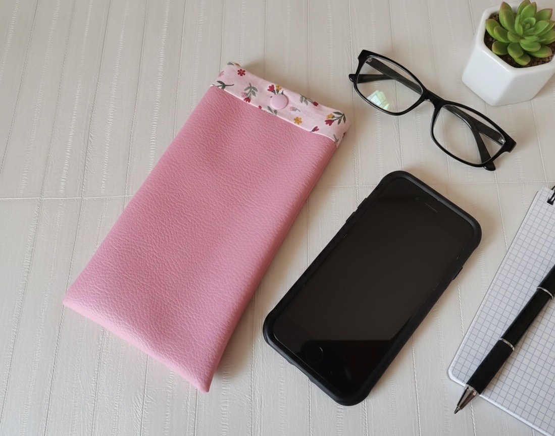 Cet étui pour téléphone portable est confectionné avec un tissu simili cuir, il est entièrement doublé avec un tissu coton certifié Oeko-Tex pour plus d'épaisseur afin de protéger votre portable, il se ferme avec un bouton pression.