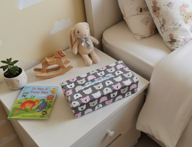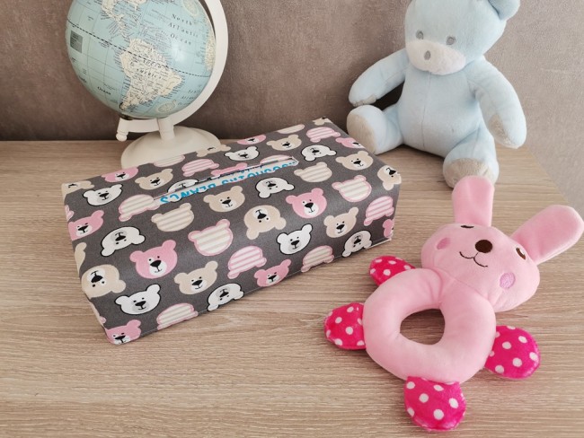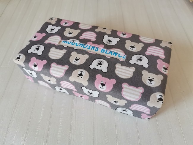 Housse pour boite à mouchoirs grise et rose motifs ours