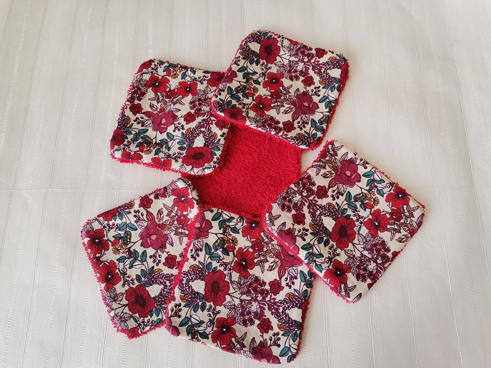 Une face coton imprimé Oeko-Tex et une face tissus éponge de couleur rouge