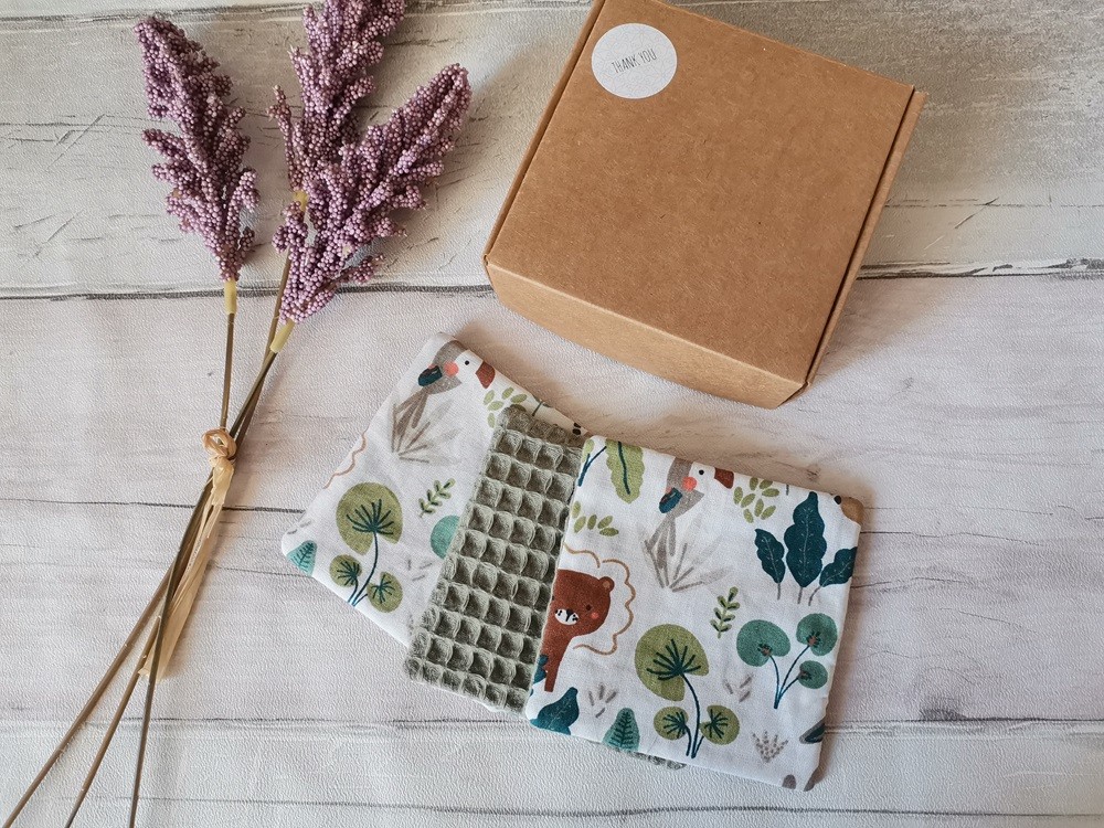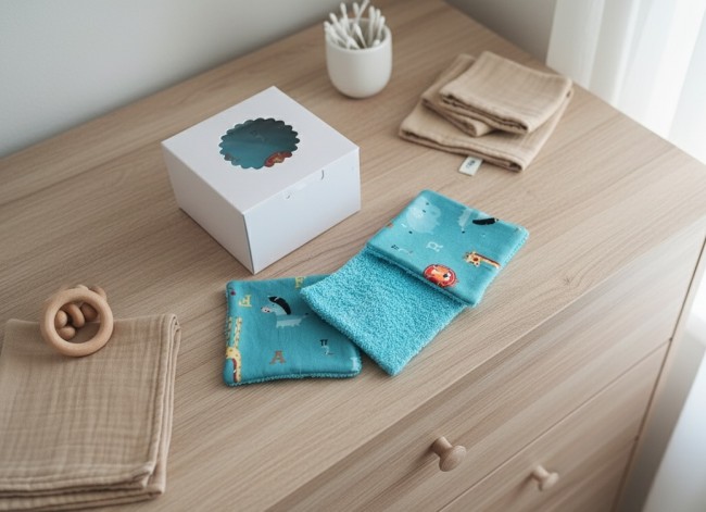 Un peu de douceur pour le change de bébé avec cette jolie boite de 10 lingettes lavables