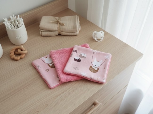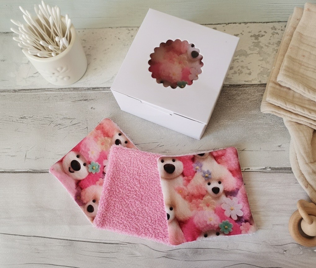 Un peu de douceur pour le change de bébé avec ce lot de 12 lingettes lavables dans leur boite cadeau