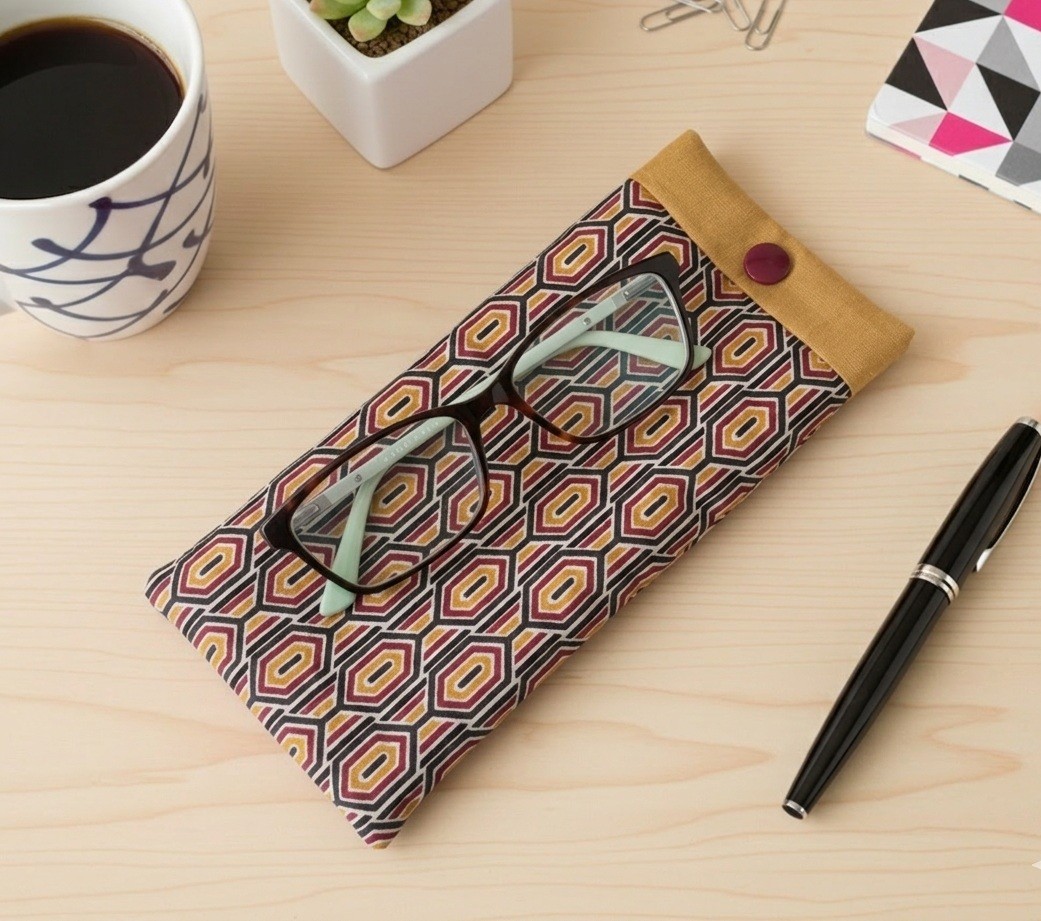 Cet étui à lunettes ou étui pour portable est confectionné avec un tissu principal en coton imprimé certifié Oeko-Tex, il est doublé avec un tissu coton uni et entre les deux un thermocollant de ouatine pour plus d'épaisseur afin de protéger votre portable ou lunettes, il se ferme grâce à un bouton pression qui n'est pas en contact avec vos lunettes ou votre portable