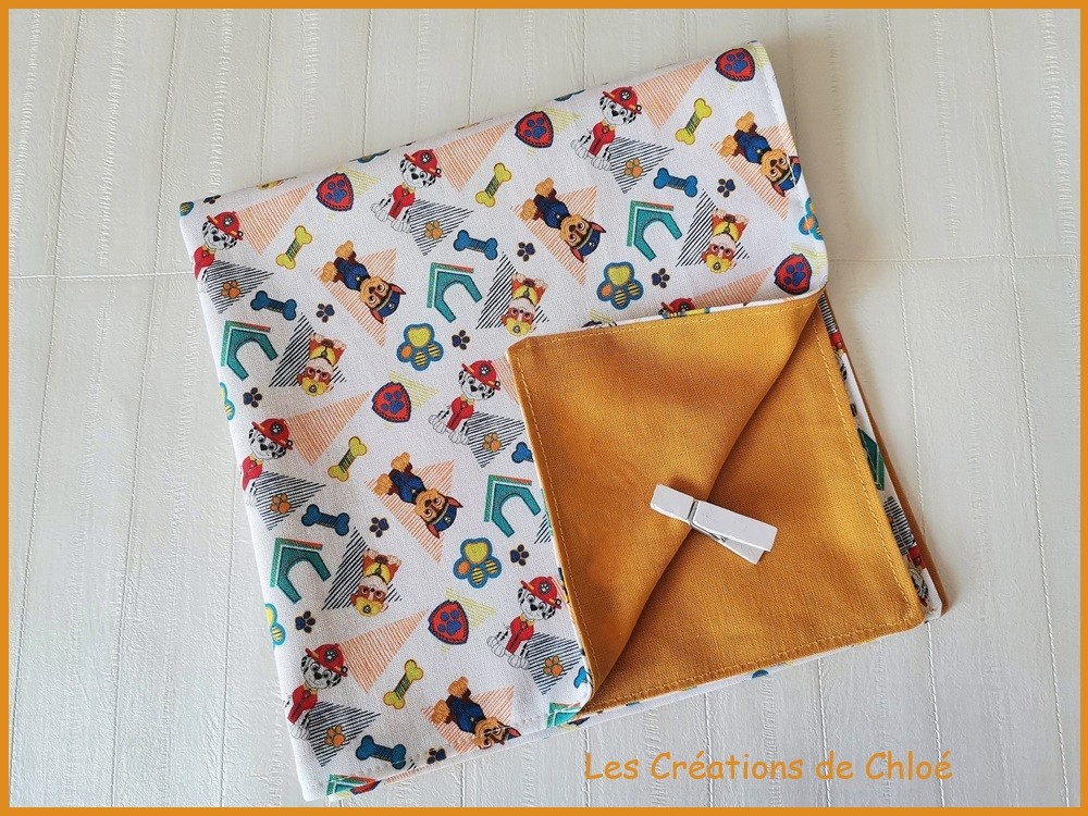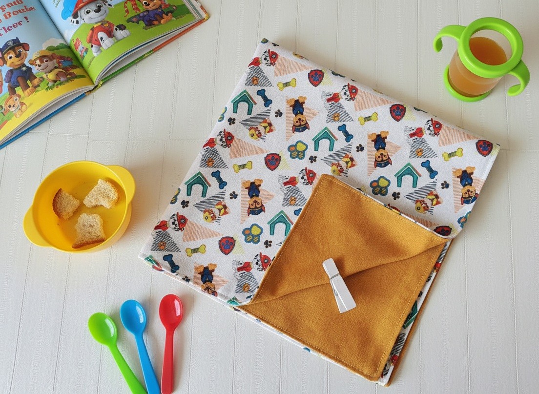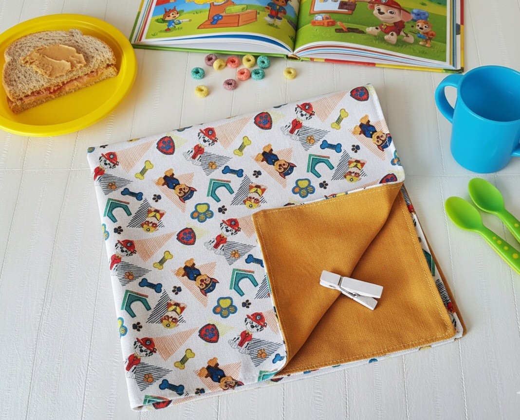 Serviette de table doublée pour enfant moutarde/Pat Patrouille