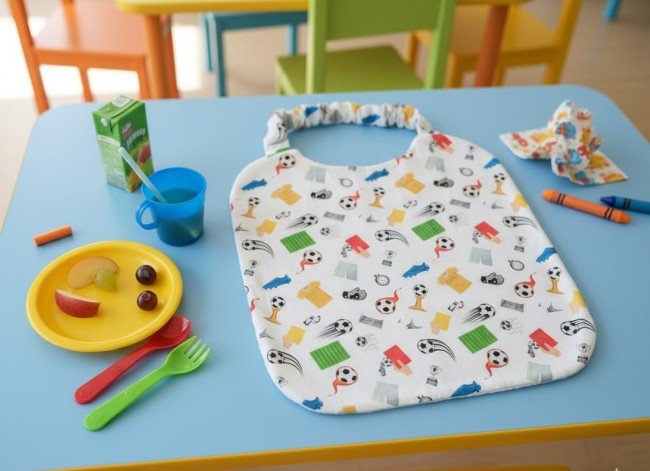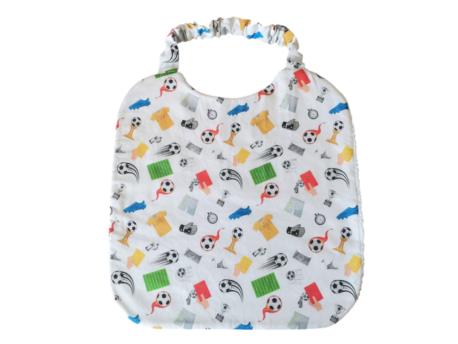Réalisé en tissu coton certifié Oeko-Tex imprimé foot et doublée tissu éponge blanche