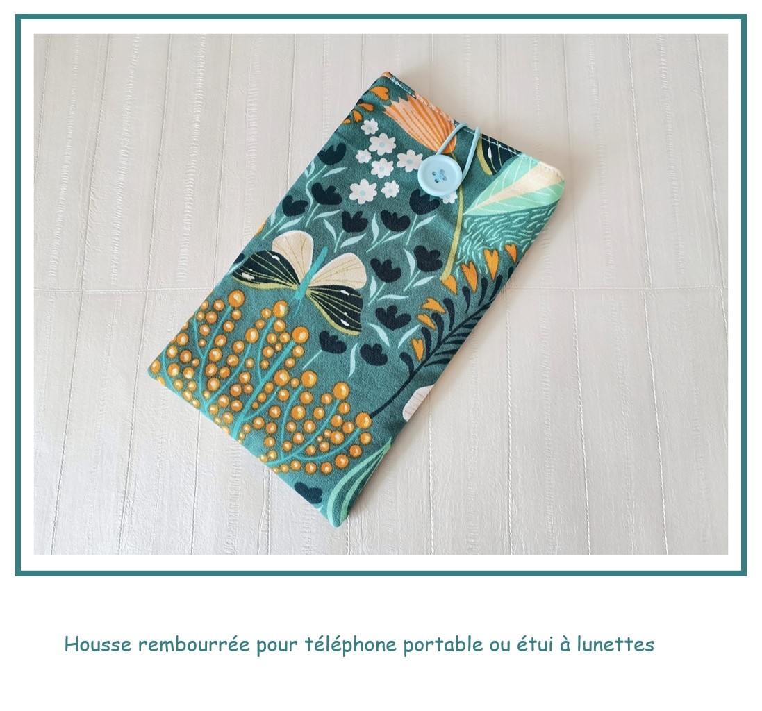 Housse/étui rembourré téléphone portable vert motifs fleurs/étui à lunettes