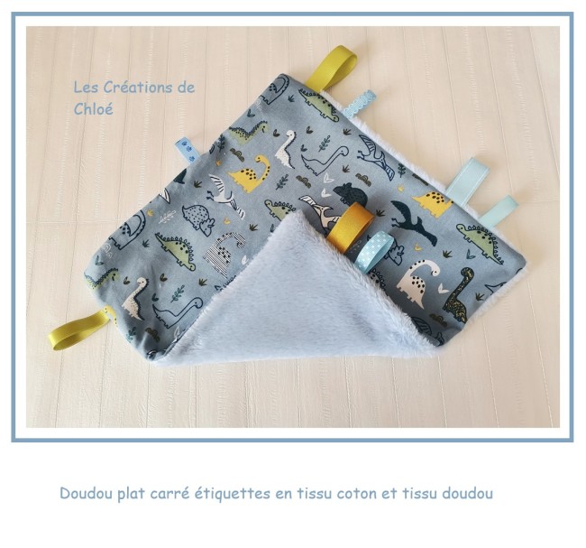 Doudou carré étiquettes parfait pour l'éveil de bébé .