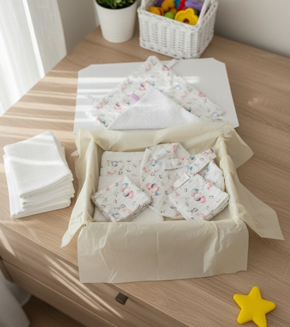 Gant de toilette bébé en éponge de couleur verte de taille idéal pour les petites mains de vos enfants avec un ruban motifs marins et une petite dragonne