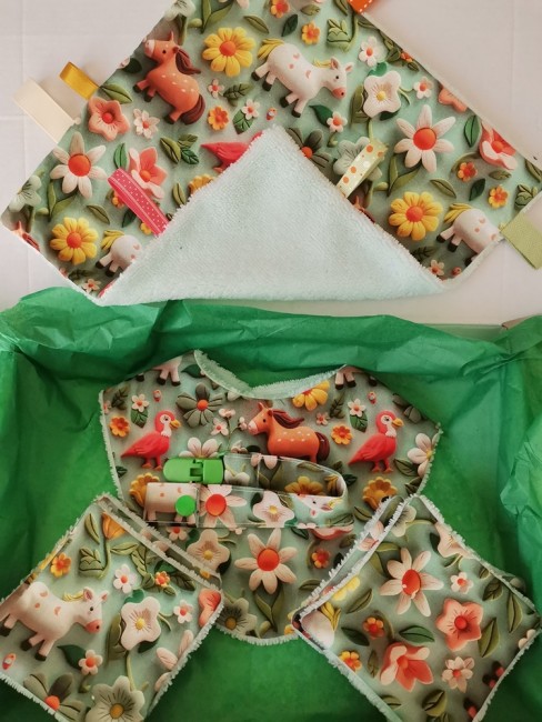 - 8 lingettes toutes douces en coton imprimé effet 3D et éponge bambou vert pale pour la toilette de bébé ( format 9 x 9 cm )