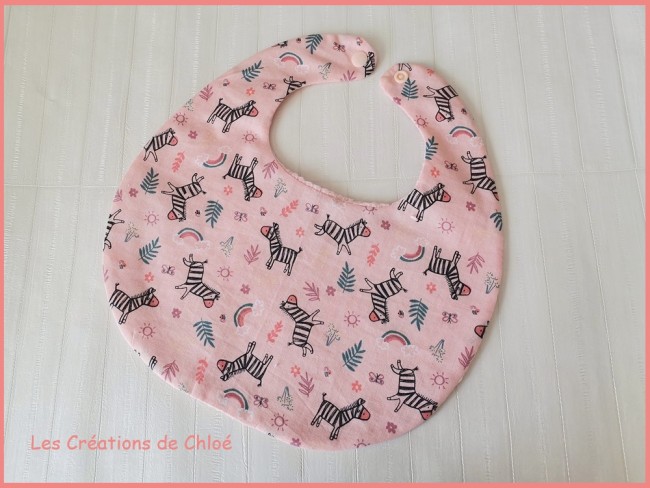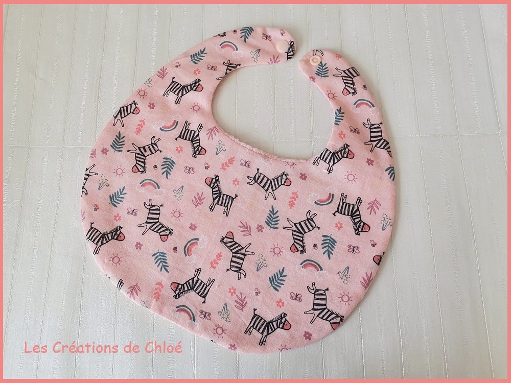 Bavoirs bébé coton motifs zèbres et nid d'abeilles rose saumon