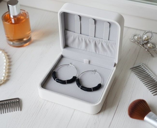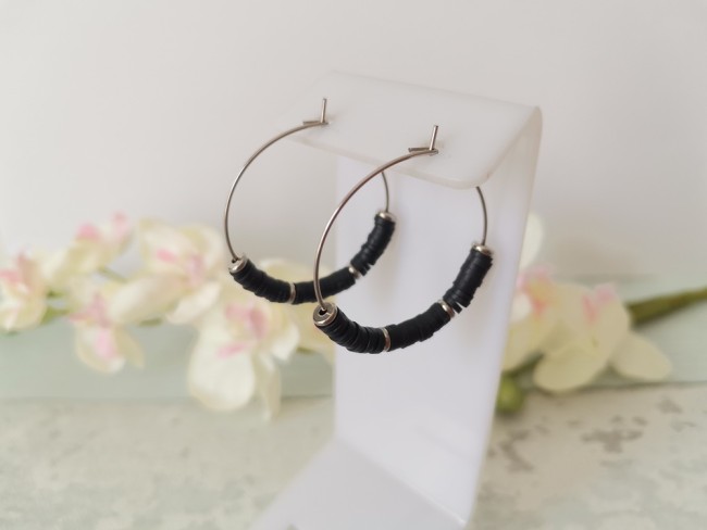 Boucles créoles acier inoxydable 30 mm et perles Heishi 5 coloris au choix