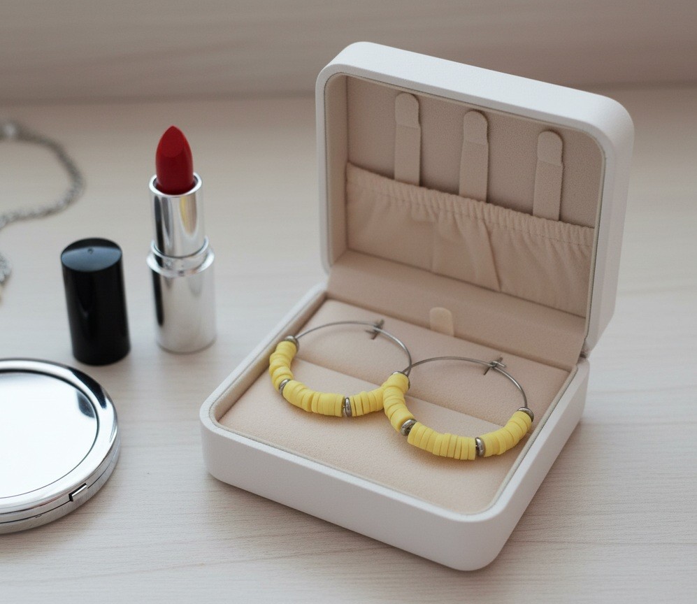Boucles créoles acier inoxydable 30 mm et perles Heishi 4 coloris au choix
