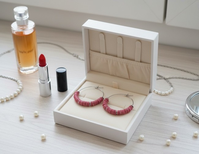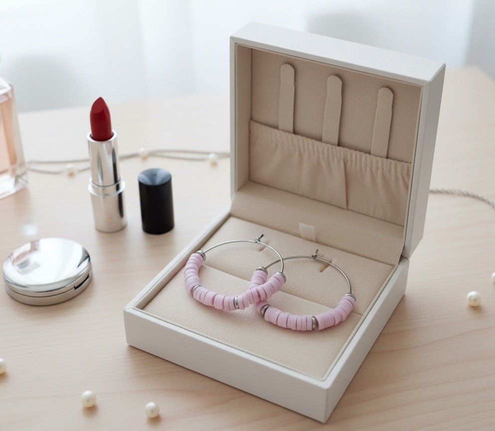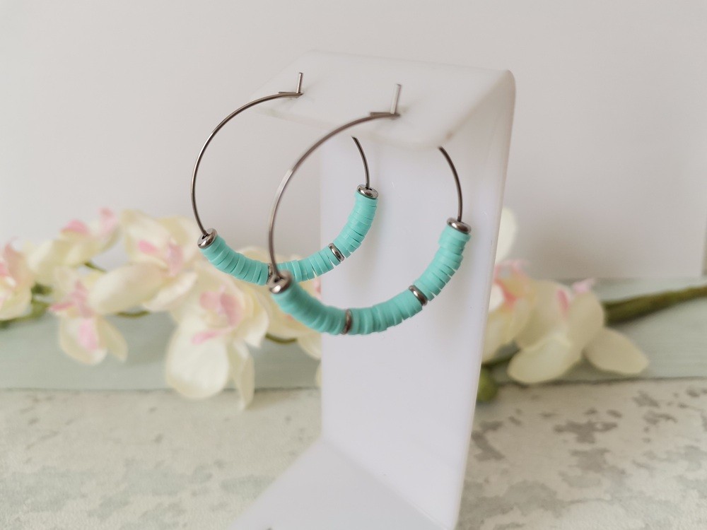 Boucles créoles acier inoxydable 30 mm et perles Heishi 4 couleurs au choix