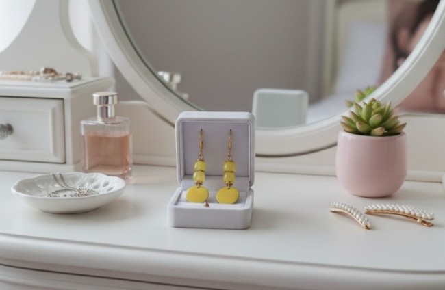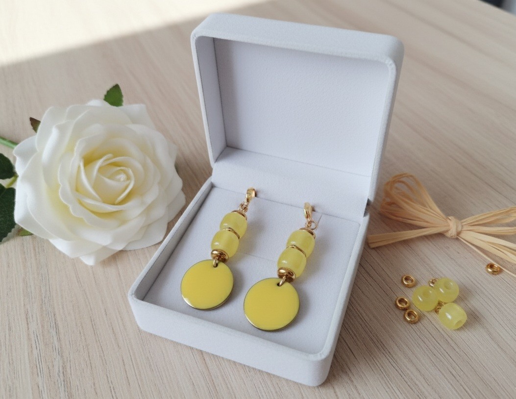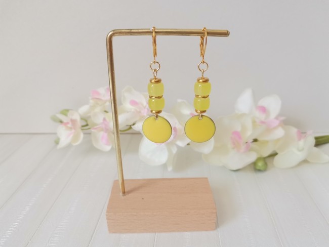 Boucles d'oreilles acier inoxydable dorées et sequin jaune