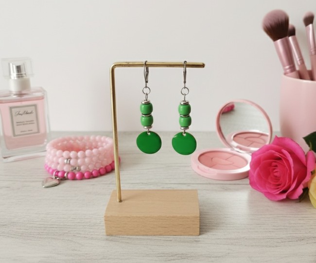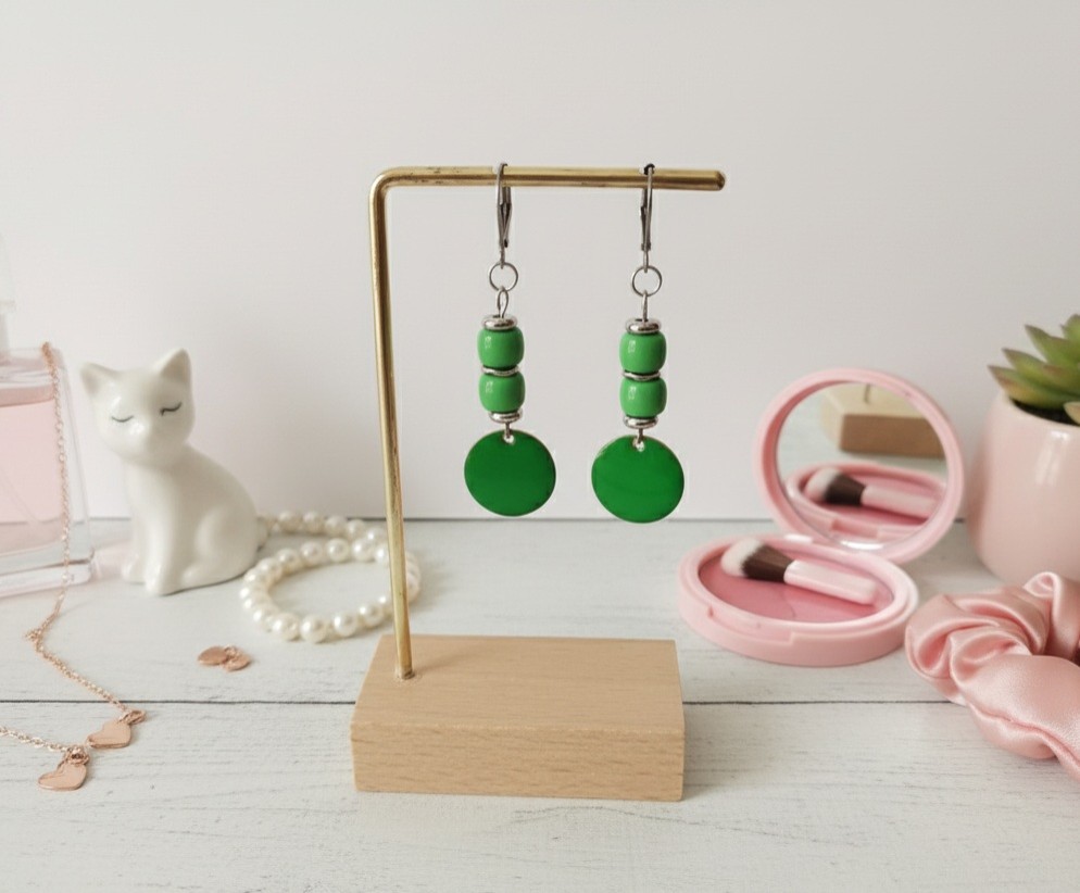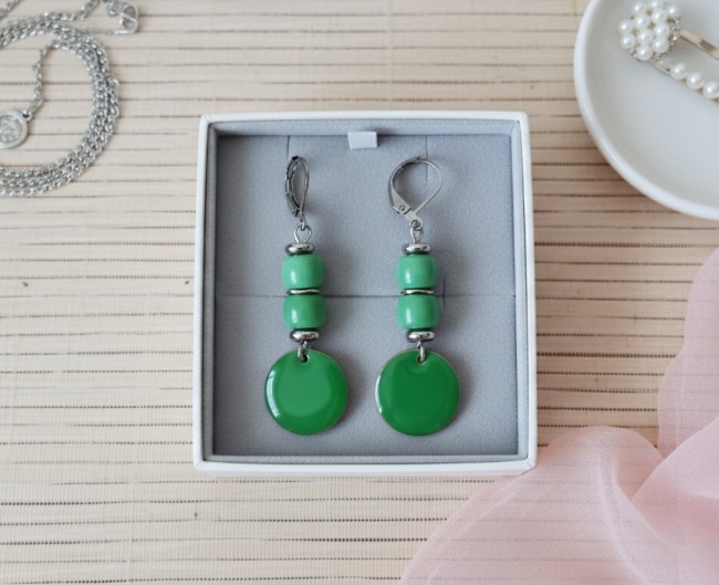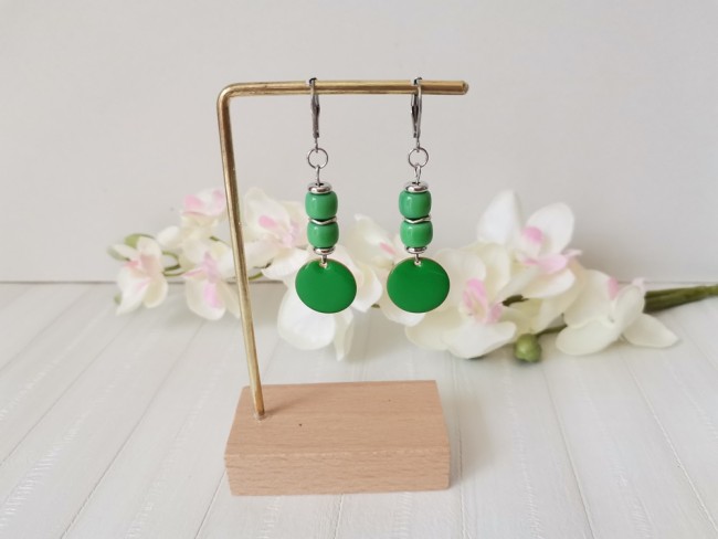Boucles d'oreilles acier inoxydable et sequin émail vert