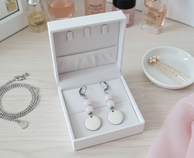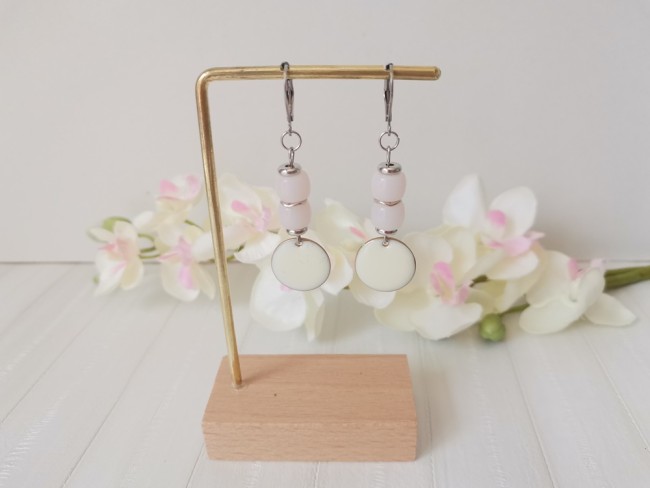 Boucles d'oreilles acier inoxydable et sequin émail blanc