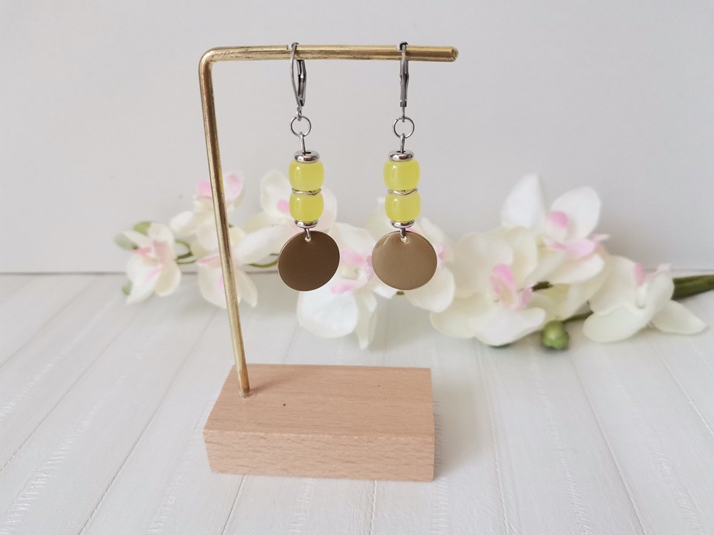 Boucles d'oreilles acier inoxydable et sequin émail marron clair