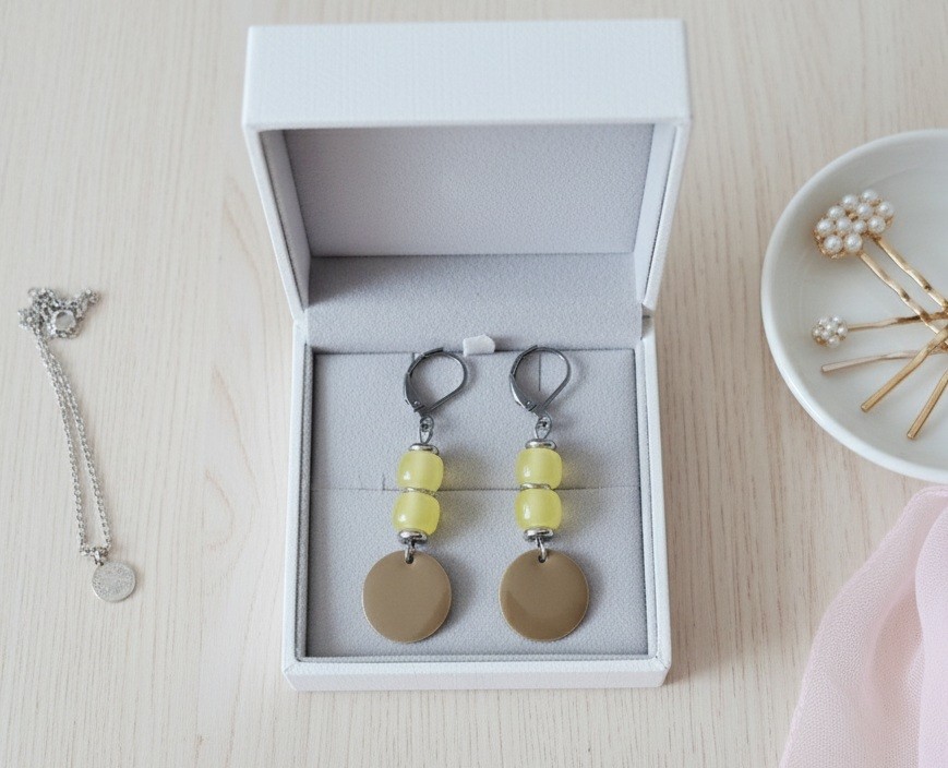 Les tiges, anneaux, perles intercalaires rondelles et dormeuses à levier sont en acier inoxydable