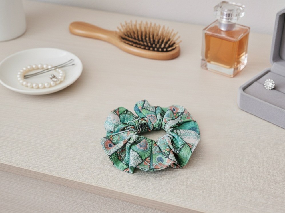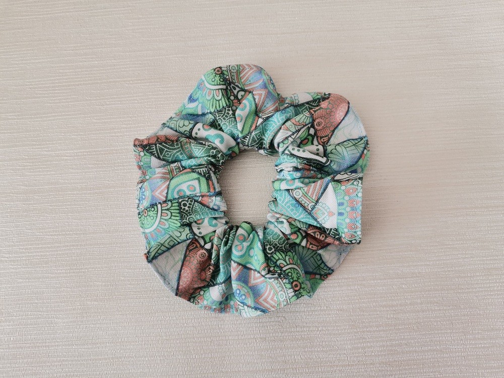 Chouchou coton vert à formes géométriques
