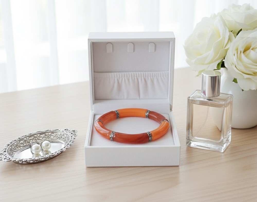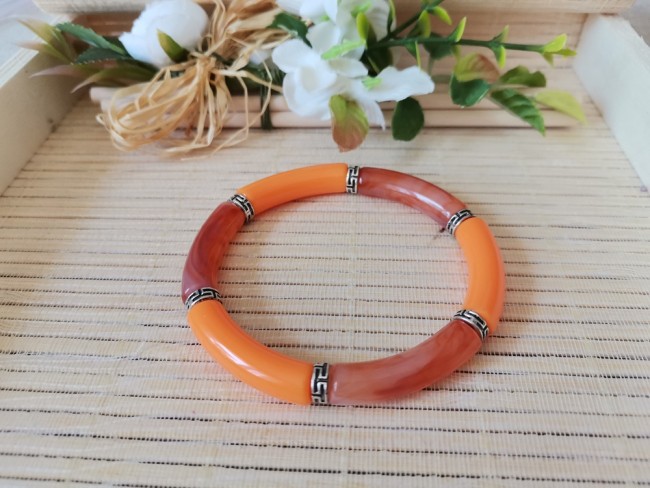 Bracelet sur fil élastique avec perles tubes incurvées et perles métal intercalaires 8 mm de couleur argent mat