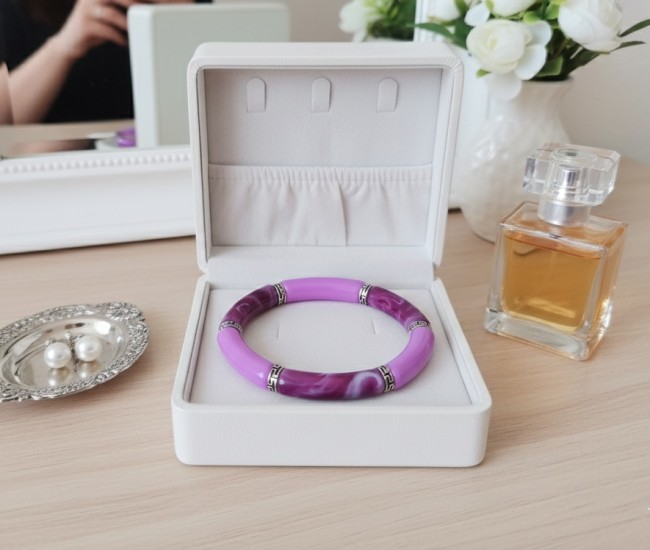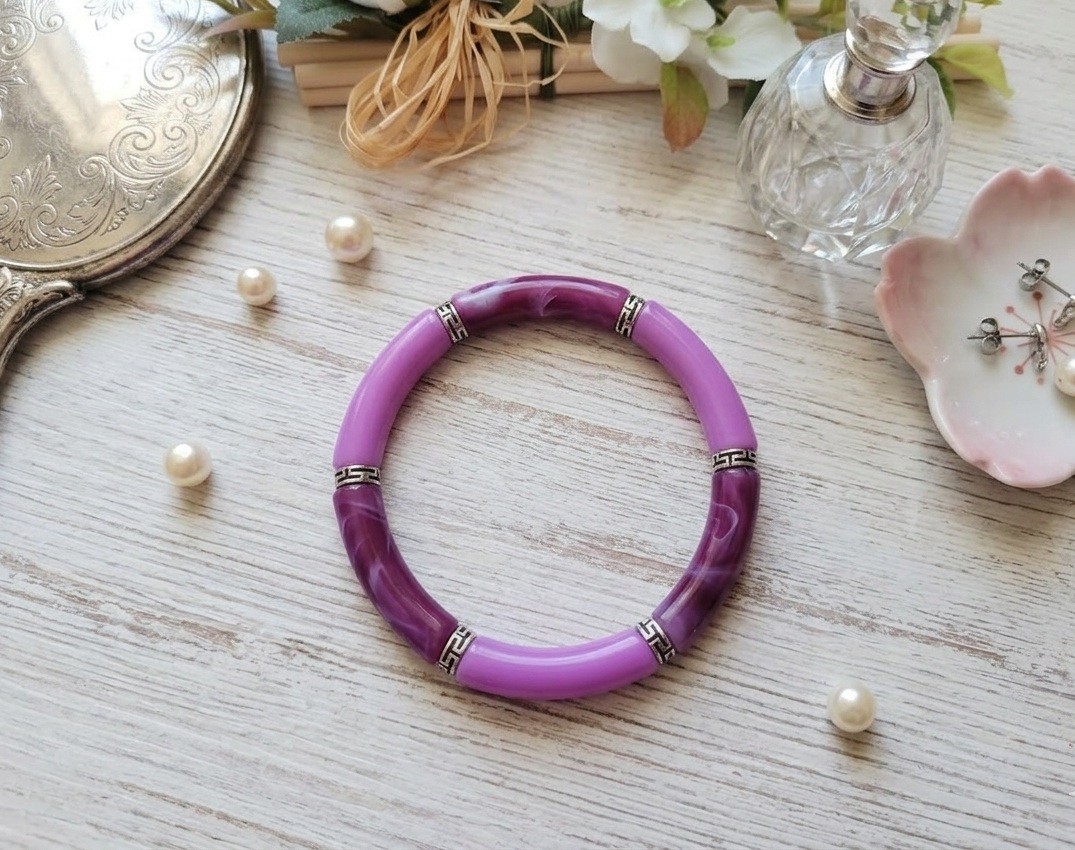 Bracelet perles tube incurvées couleur violet et lilas