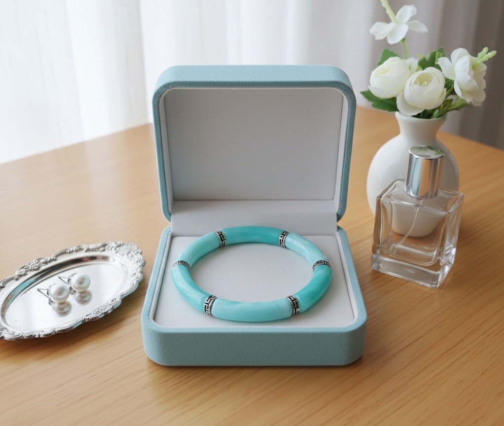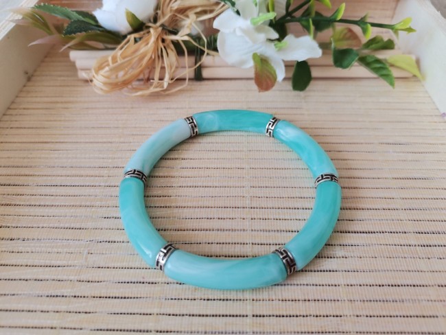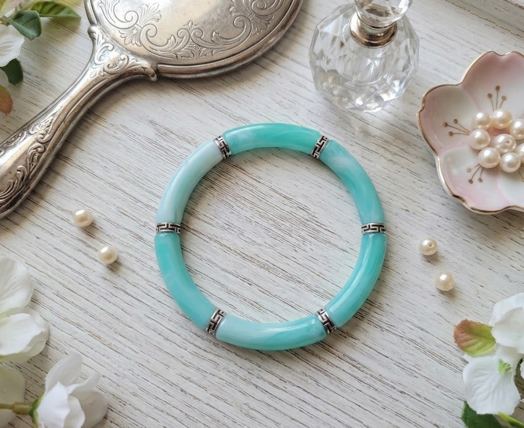 Bracelet perles tube incurvées couleur bleu turquoise clair