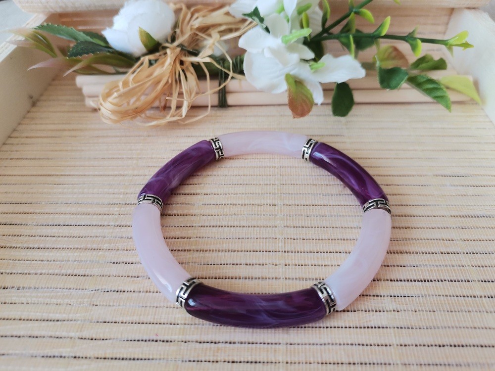 Bracelet perles tube incurvées couleur violet et mauve pale
