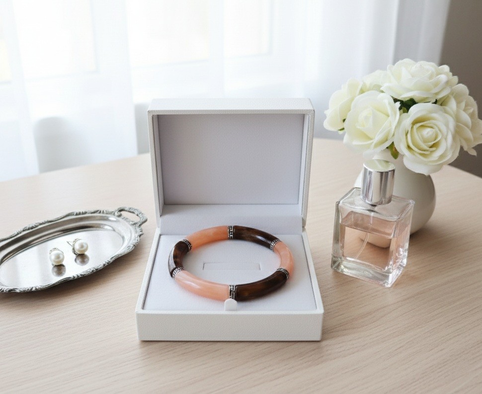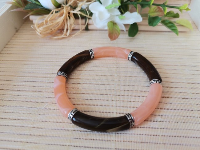 Bracelet perles tube incurvées couleur orange et marron foncé