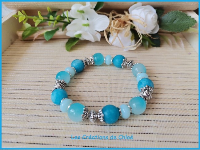 Bracelet fil élastique perles verre et jade bleue