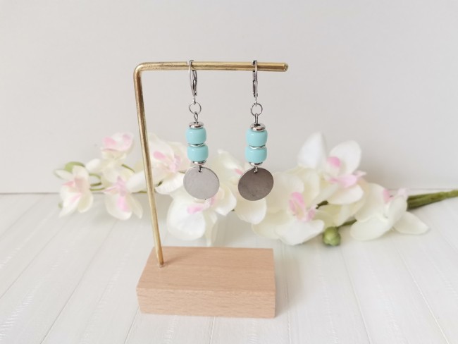 Les dormeuses, perles rondelles intercalaires, anneaux et clous sont en acier inoxydable et donc anti allergie.