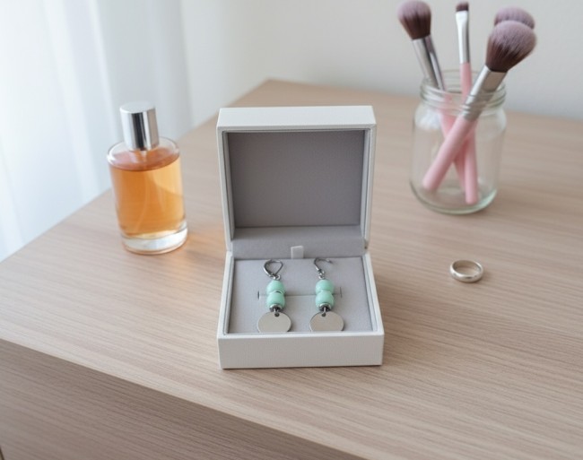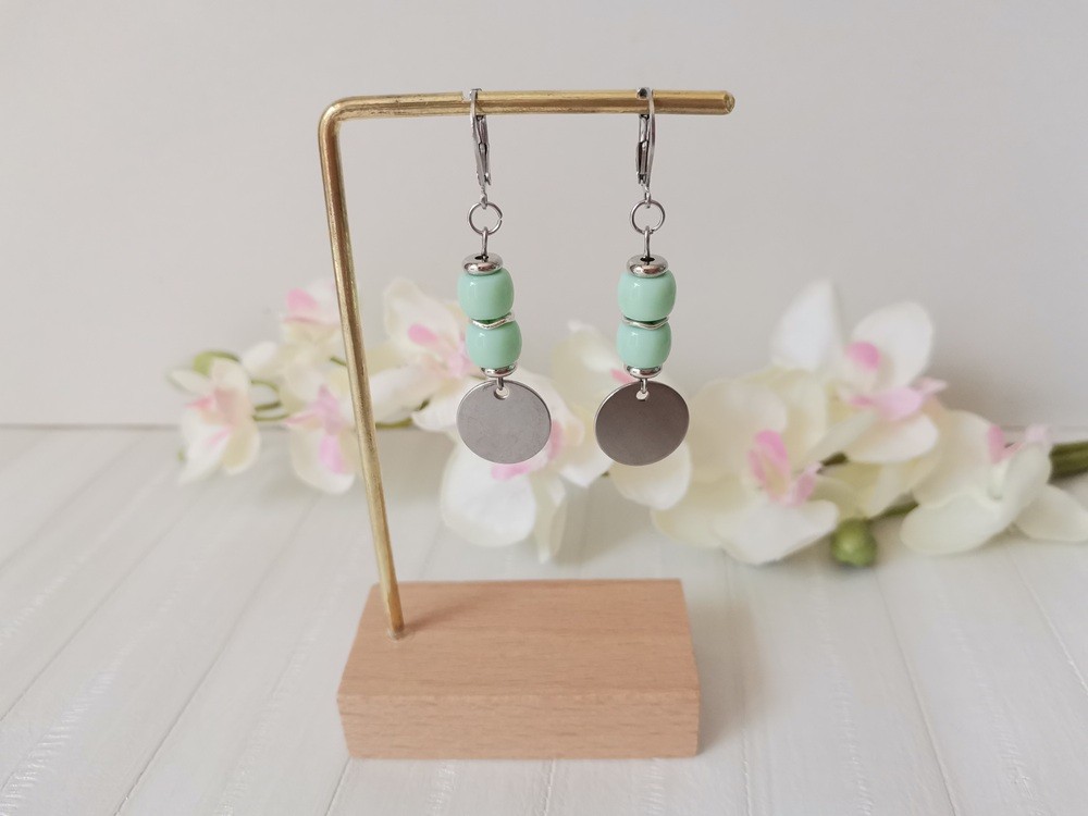 Les dormeuses, perles rondelles intercalaires, anneaux et clous sont en acier inoxydable et donc anti allergie.