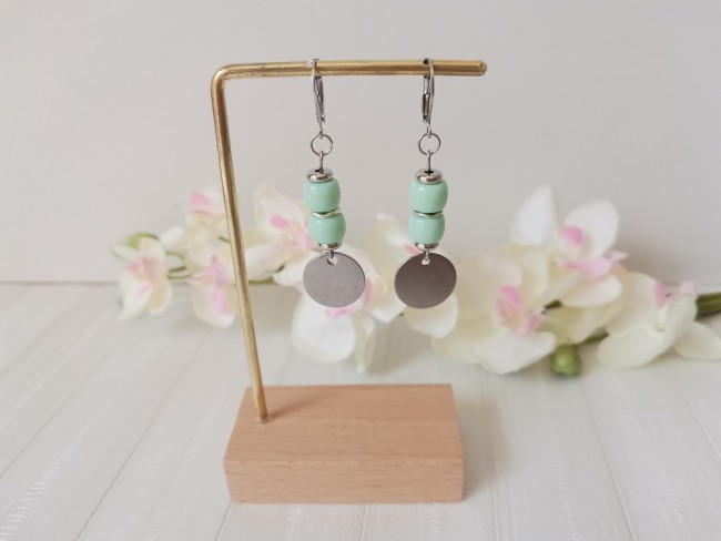 Elles sont composées de perles en verre colonne 8 mm et un sequin en métal de 15 mm