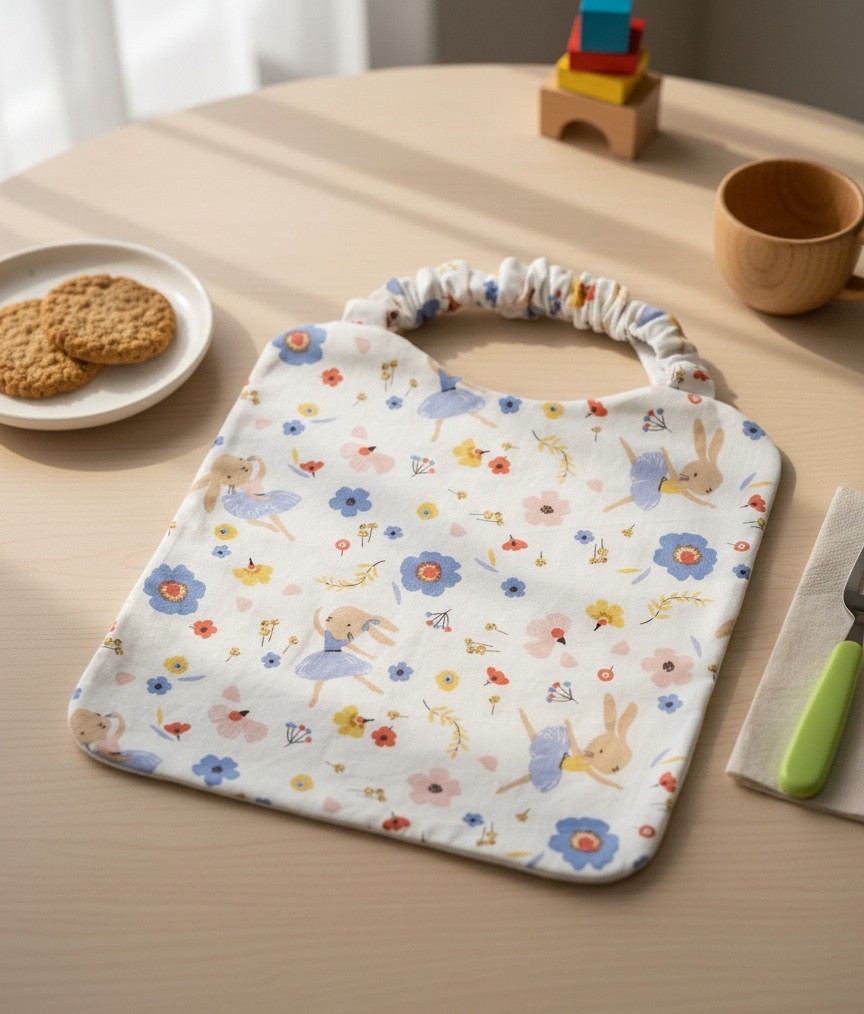 Réalisé en tissu coton certifié Oeko-Tex imprimé et doublée tissu éponge blanche