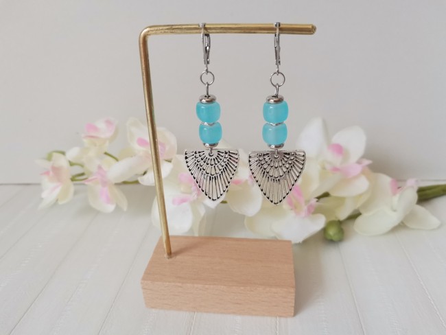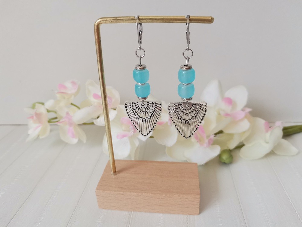 Boucles d'oreilles composées d'un pendentif forme aile en métal et de perles en verre colonne 8 mm