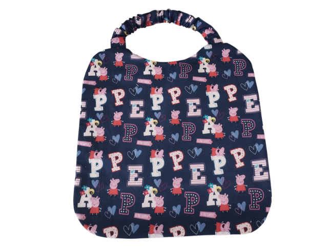 Serviette de cantine motifs Peppa Pig fond bleu marine et éponge blanche