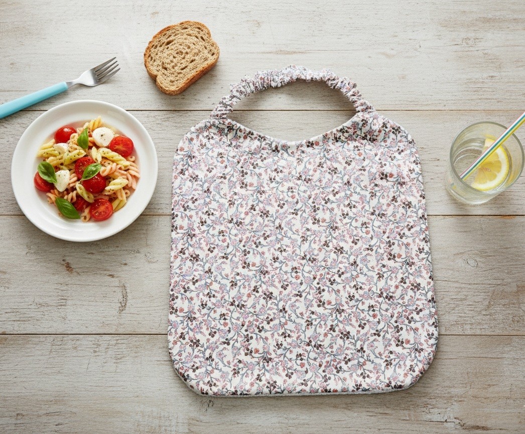 Serviette de cantine motifs petites fleurs et éponge blanche