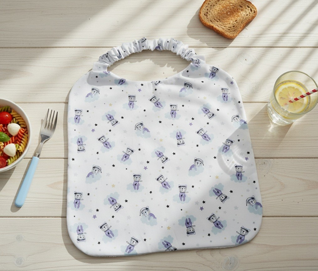 Réalisé en tissu coton certifié Oeko-Tex imprimé et doublée tissu éponge blanche