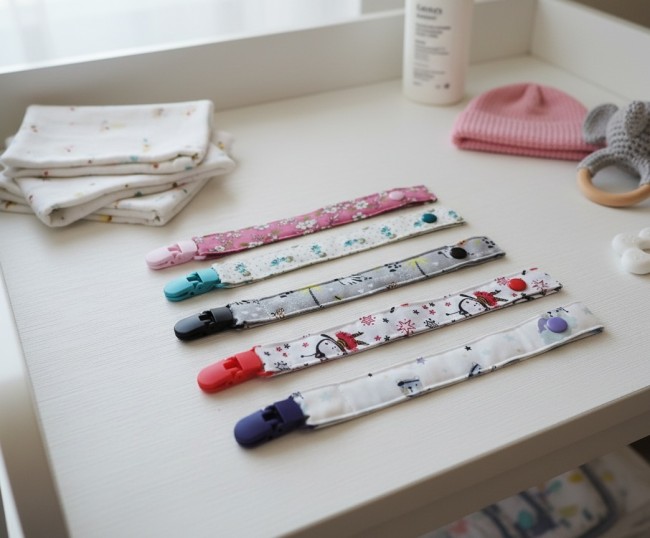 Attache tétine en tissus coton certifié Oeko-Tex imprimé avec pince couleur et bouton pression