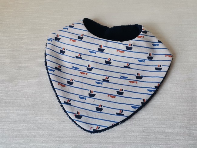 Tissu à motif imprimé et doublé par un tissu éponge bambou de couleur bleu marine