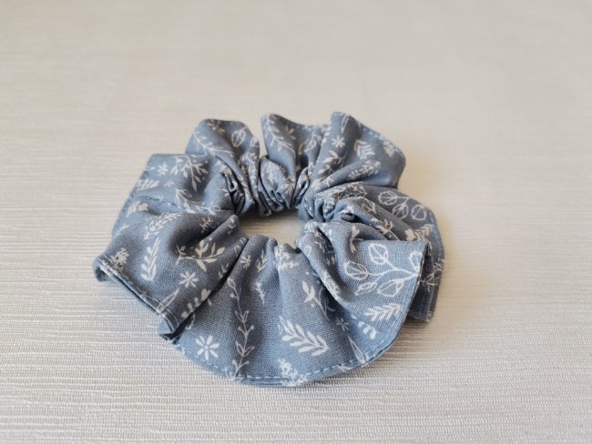 Chouchou coton bleu à feuilles blanches